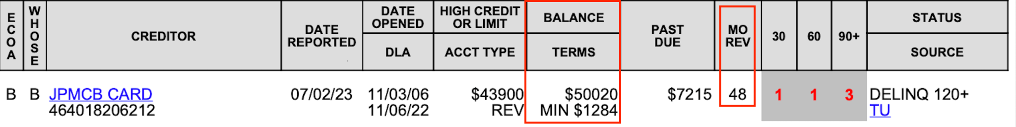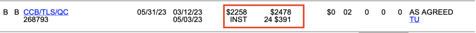 IF CC: Limit Balance Min payment x # payments made.